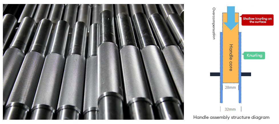 As shown in the diagram on the right, the stainless steel sleeve and the inner core with shallow knurling are assembled by high-pressure extrusion to achieve an interference fit.
