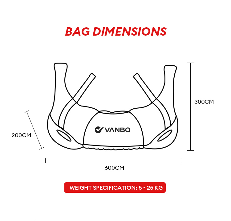 The back filling port is sealed with thick nylon rope. All iron sand has an inner liner. When filled in the croissant bag, it will not leak sand even when used at high load.